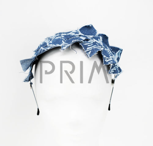 DENIM FRINGED SQUARE HEADBAND
