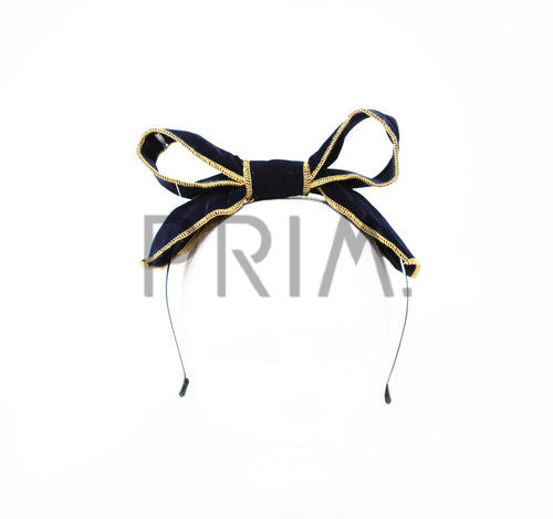 VELVET WIRE BOW WITH STITCHING HEADBAND