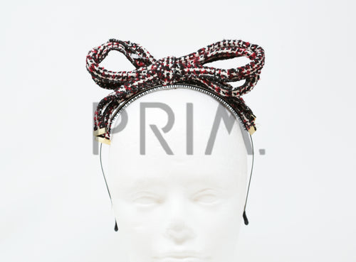 TWEED TIE BOW WITH GOLD TIPS HEADBAND