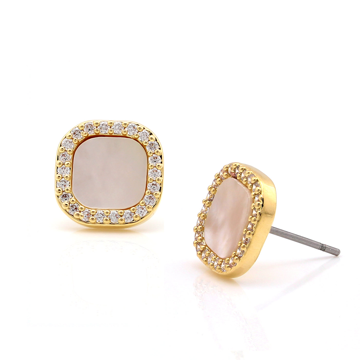 cameo collections eaerring stud square cz outline mop
